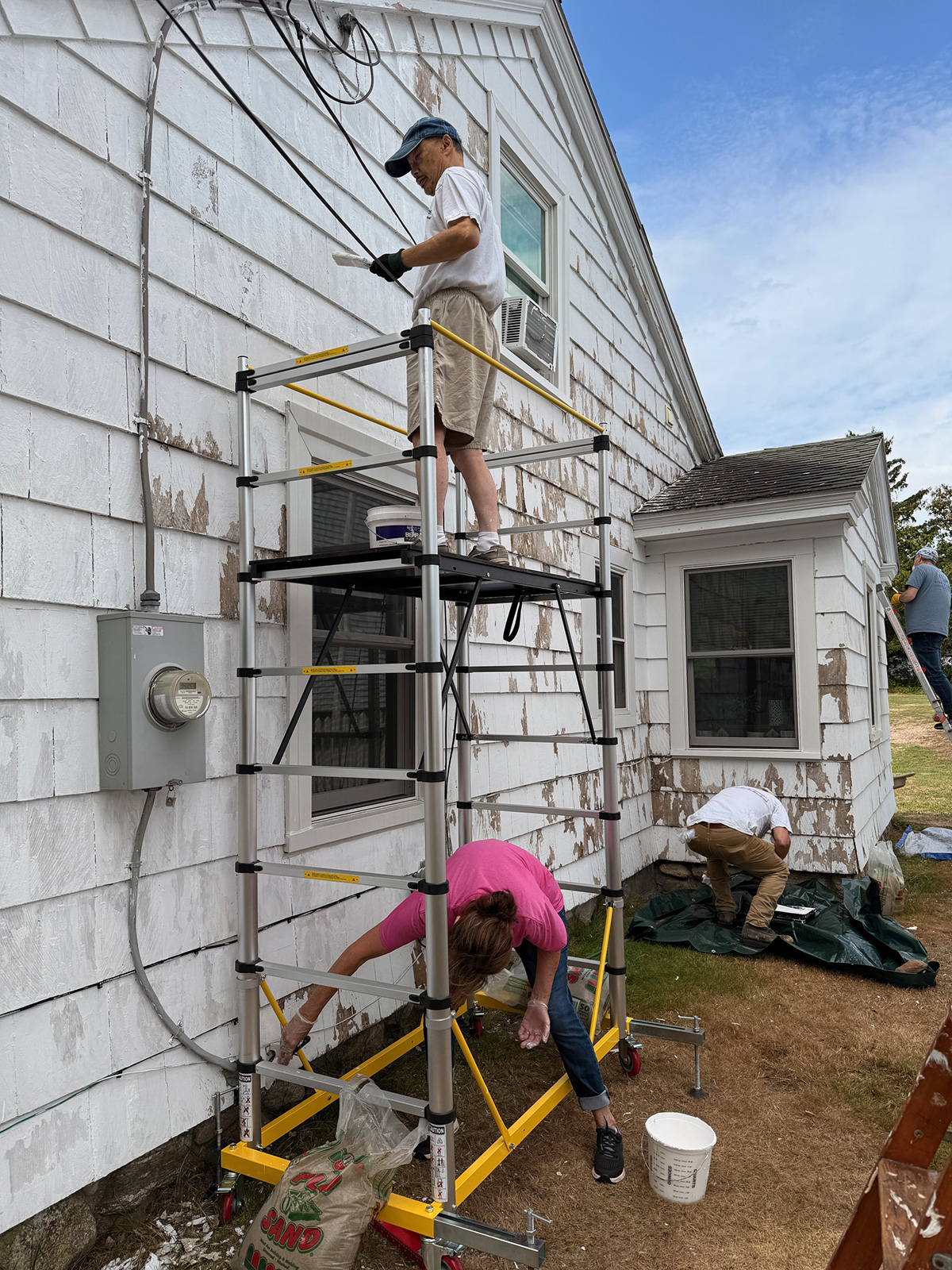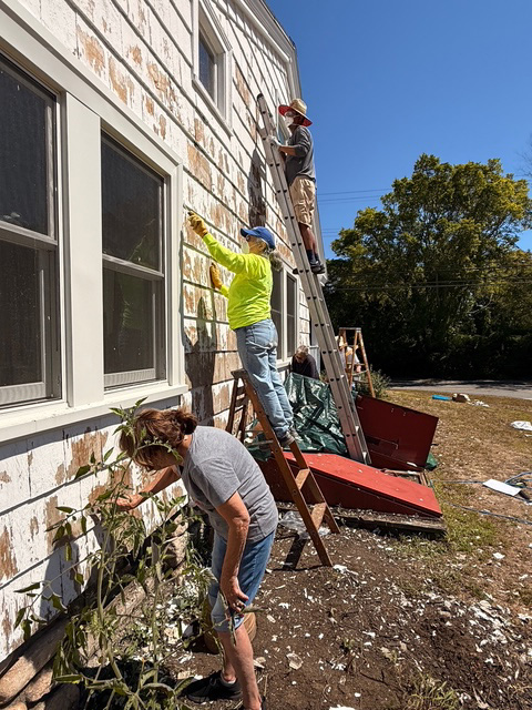 Our dedicated crew of volunteers took charge of a project that was long overdue. As summer was coming to a close, we planned to have our house scrapped, primed and painted in about 6 weeks. We met on Wednesdays, Fridays, and a couple of Saturdays from 9 to 2. We worked very hard in the hours we were there and were rewarded with fellowship, teamwork and honks from the daily bus drivers cheering us on and loving the new colors. When we asked for volunteers, we said everyone can help whether you can paint or not. Our request was lovingly fulfilled by Dale and Valerie providing us with lunches, rounding out our painting crew and reminding us all of the value of our community.